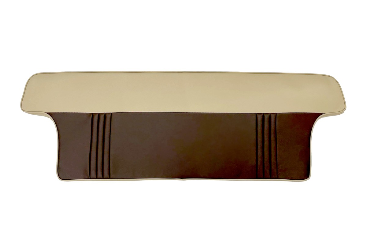 Two-tone rear backrest cushion and cover. This vinyl cover is handsewn and made from original patterns.